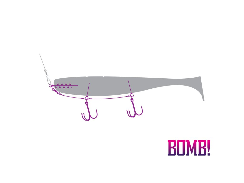 Pokud jste příznivci velkých nástrah, tak ve vaší výbavě nesmí chybět BOMB! Twisto MultiTRAP. Systém nastražení je díky šroubu, který osadíte přímo do nástrahy jednoduchý a velmi rychlý. Dva silné a ostré trojháky, upevníte do nástrahy pomocí bodců na požadovanou vzdálenost. Celý systém MultiTRAP je kombinován z těch nejkvalitnějších komponentů, aby se co nejvíce snížilo riziko ztráty Vašeho kapitálního úlovku. Systém MultiTRAP je nezatížený a umožňuje si doladit nástrahu podle vašich představ. Ať už přidáním čeburašky, přídavného závaží, nebo lze nástrahu používat i bez závaží v mělkých vodách.