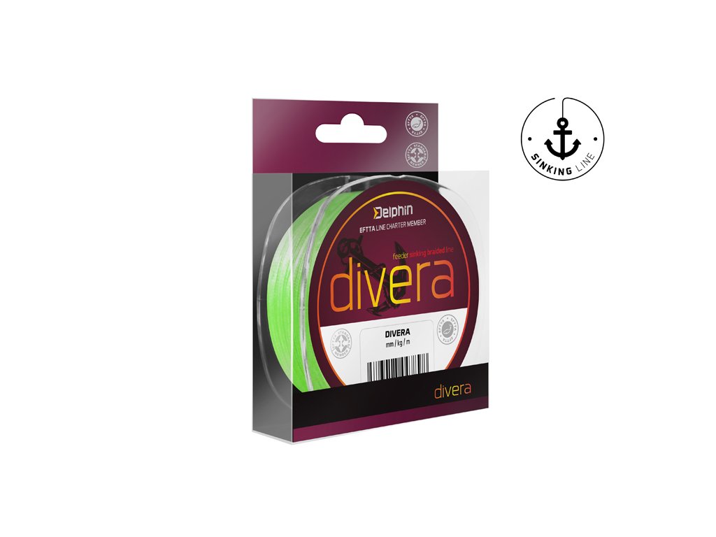 Vynikající šňůra určená především na feeder. Tak jak napovídá název, odvozený od slova diver - potápěč, jde o rychlopotápivou šňůru s excelentními vlastnostmi. Vyznačuje se svou pevností, odolností a barevnou stálostí. Díky speciální povrchové úpravě snadno prochází očky prutu a je vhodná i na daleké nahazování při větší zátěži. DIVERA drží velmi dobře v uzlu a nedochází u ní k efektu prokluzování. Výborná 4+1 vláknová šnúra, která uspokojí každého vyznávače feederu.