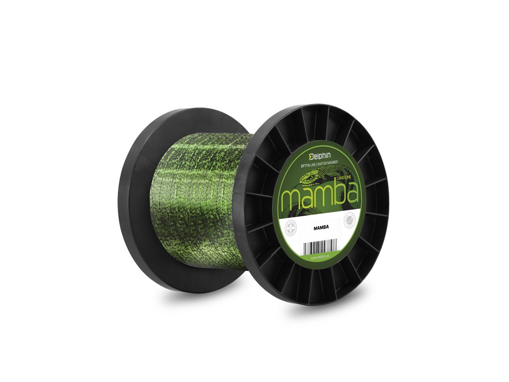 Excelentní kaprařský vlasec s unikátním 3D vzorem. MAMBA disponuje vynikajícími vlastnostmi jako pevnost a nosnost v uzlu. Díky svému jedinečnému kamuflážovému provedení rychle splyne s okolním prostředím. Jeho pevnost a odolnost vůči oděru ho předurčují k použití i do náročných podmínek a jeho mimořádně hladký a jemný povrch umožňuje využití při dalekém nahazování. Díky těmto vlastnostem je Delphin MAMBA považován za univerzální kaprařský vlasec, který splňuje ty nejnáročnější požadavky, a na který se můžete spolehnout v každé situaci.