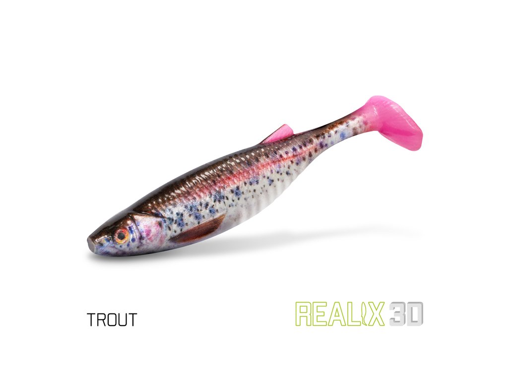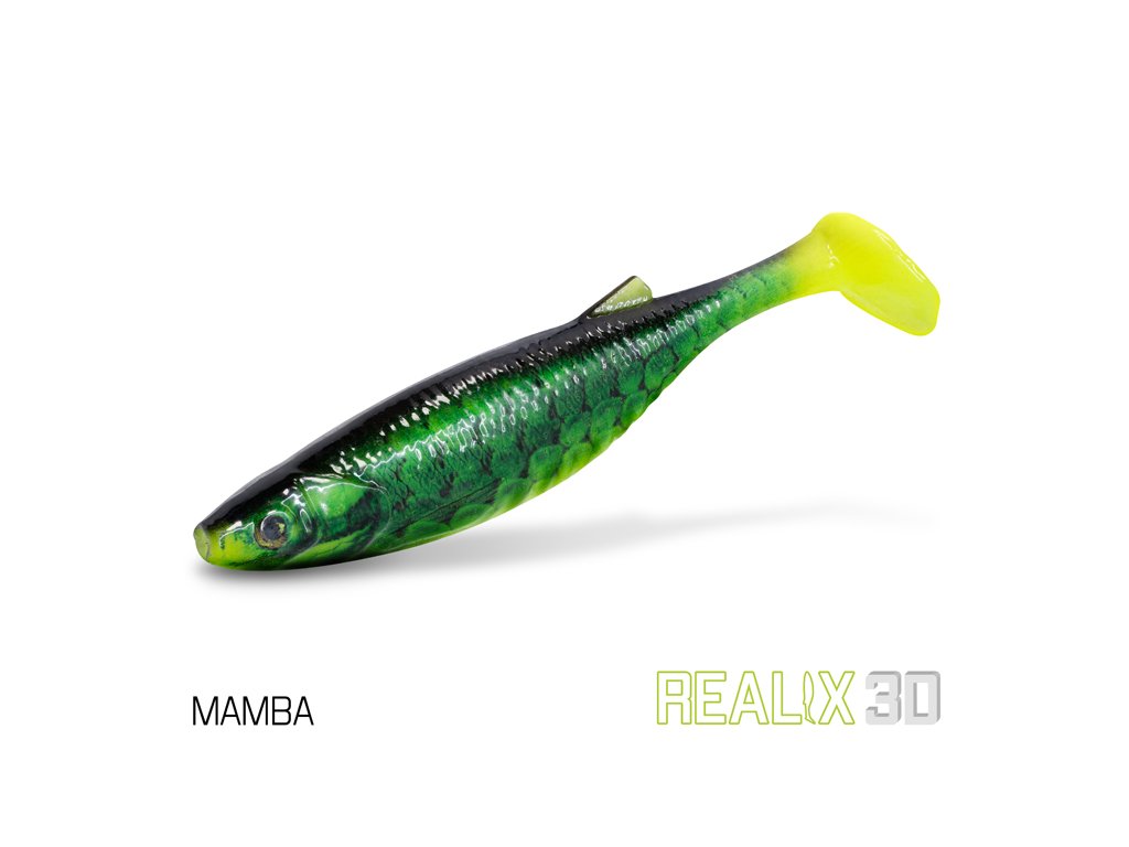 Delphin Realix 3D je měkká umělá nástraha typu paddle tail, která ve vodě dokonale imituje malou rybku. Její velikost je přizpůsobena lovu větších dravců, jako jsou štika, candát nebo sumec.