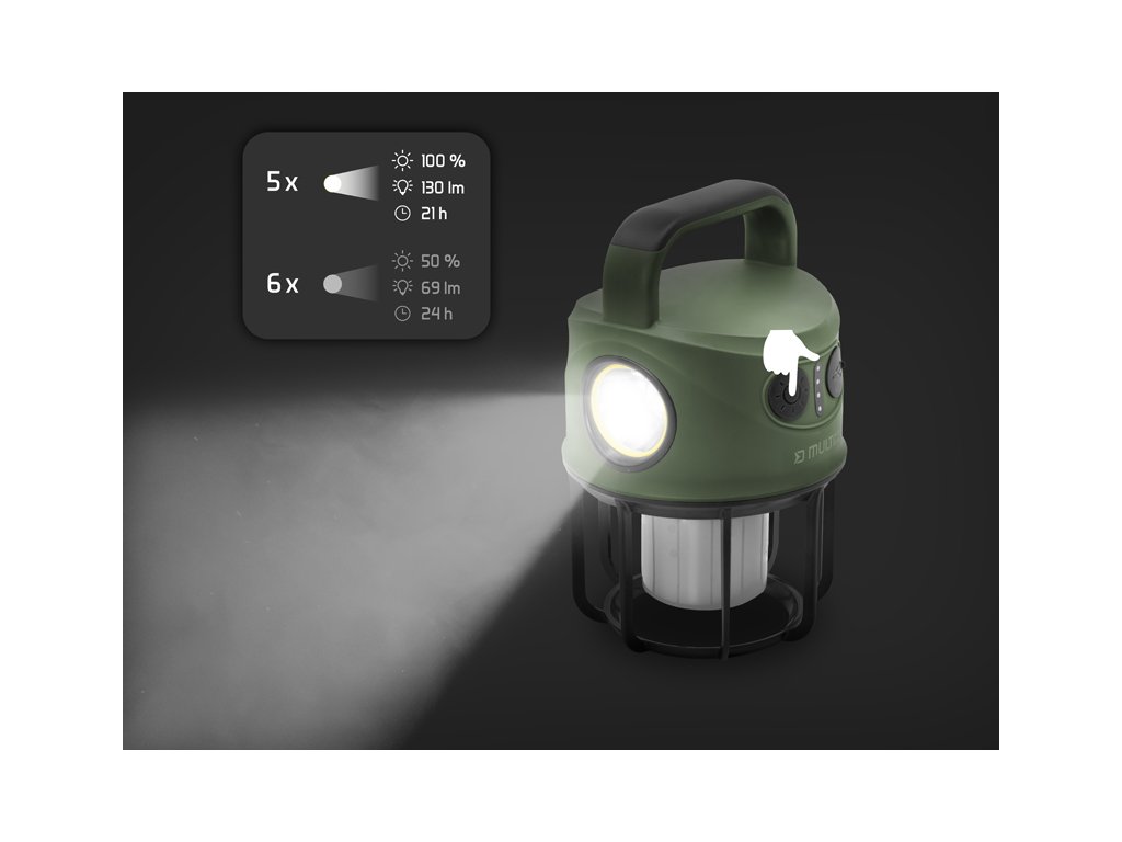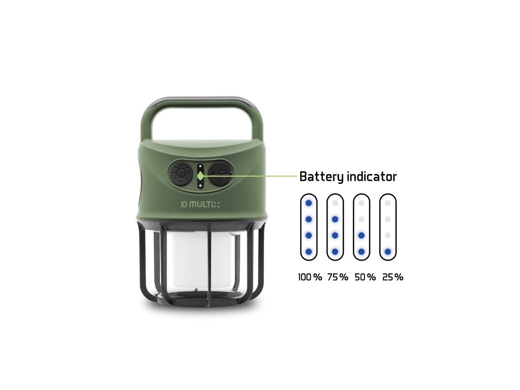 Delphin MULTiX je praktická nabíjecí kempingová lampa, která kombinuje vysoký světelný výkon, dlouhou výdrž a odolnou konstrukci. Díky USB-A portu, kterým je lampa vybavena také poslouží jako powerbanka.