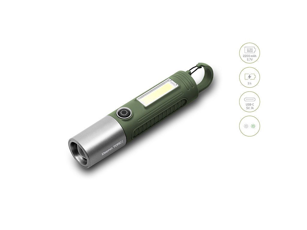 Delphin Torix je praktická nabíjecí svítilna s univerzálním využitím. Můžete jej použít jako klasickou baterku, lampu do bivaku nebo jako spolehlivého pomocníka při nočním nahazování – zejména díky funkci ZOOM, která umožňuje přizpůsobit šířku světelného kužele přesně podle potřeby.
