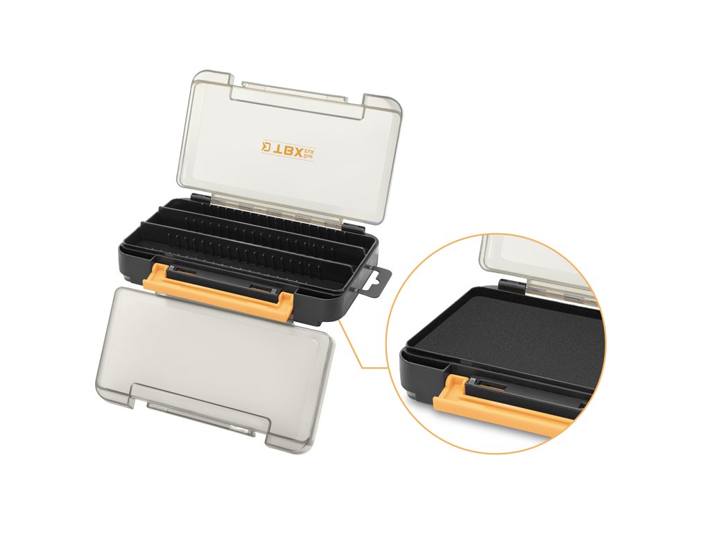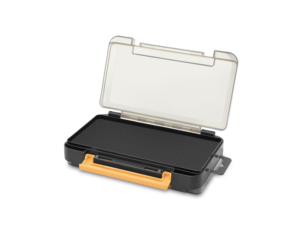 Spodní část krabice je vystlaná EVA pěnou, která chrání hroty háčků a udržuje je vždy ostré. Drážky v pěně umožňují snadné upevnění návazců, samotných háčků či jiných drobných nástrah – včetně much, což ocení i příznivci muškařiny.
