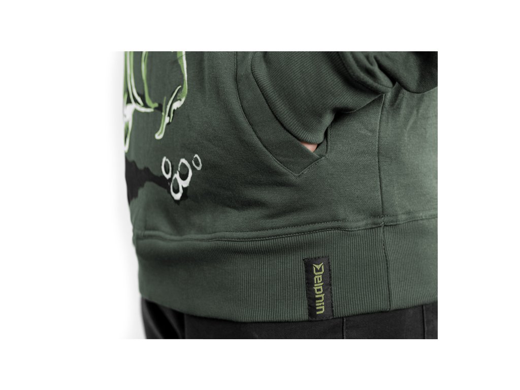 Mikina Delphin CATCH ME! je série stylových mikin, díky kterým se odlišíte. CATCH ME IF YOU CAN (Chyť mě, pokud to dokážeš) s vyobrazením kapra je nevšední kousek do vašeho, ne jen kaprařského šatníku. Malba kapra prochází dokola celého trupu v jeho spodní části. Kapr je zobrazen jako skica či malba při zachování všech důležitých detailů. Ryba je zachycena v situaci, kdy se blíží k hrsti boilies, což je právě ten moment, na který všichni na břehu čekáme. Samotná mikina je vysoké kvality, stejně jako použitý barevný tisk.