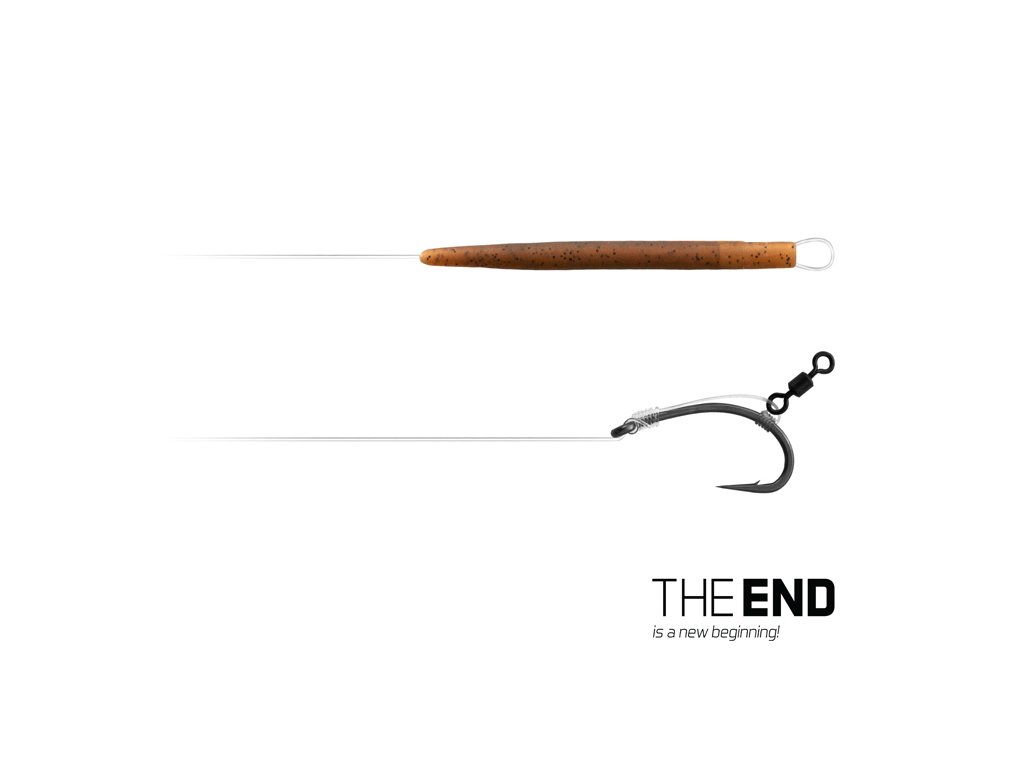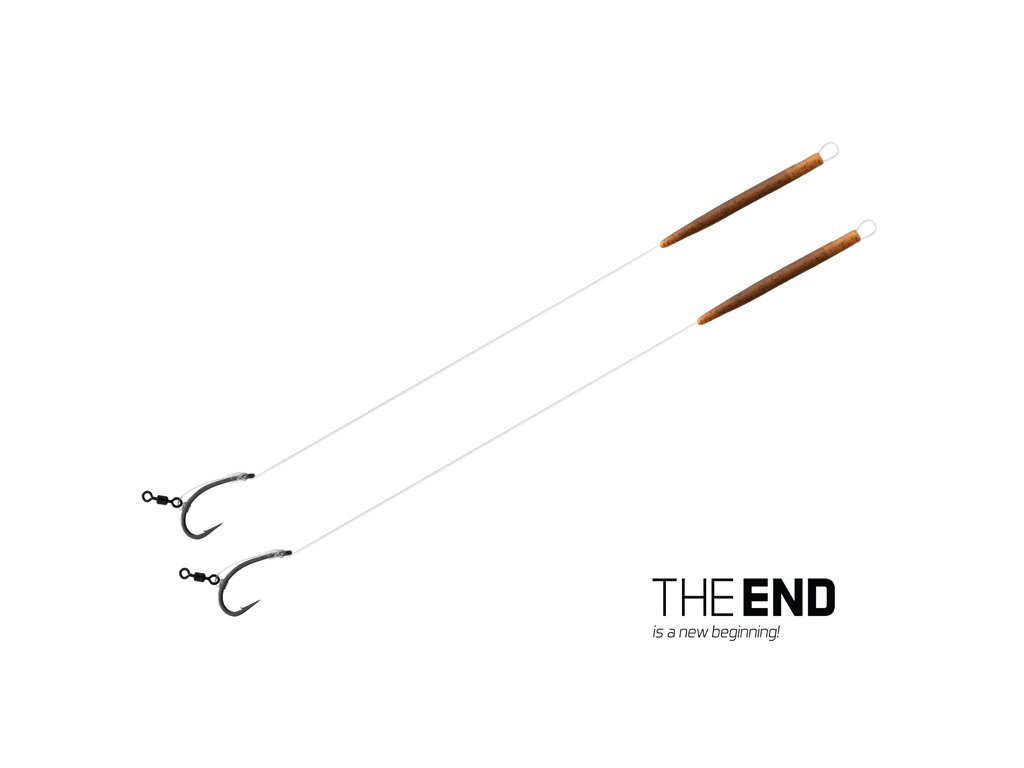 Hotový kaprařský návazec ze série THE END, na výrobu kterého byly použity komponenty nejvyšší kvality. Je určen zejména k dokonalé prezentaci neutrálně vyvážené nástrahy. „balansky“, ale také se výborně hodí při použití takzvaného panáčka, tedy kombinace potápěvé nástrahy s plovoucí. Je vyroben z fluorokarbonu, čímž se stává velmi chytlavý a téměř vždy se po nasátí kaprem zapíchne do jeho tlamy. Díky transparentnosti fluorokarbonu a použité kamuflážové gumičky proti zamotání dokonale splyne s vodním prostředím a umožňuje tak odprezentovat nástrahu maximálně nenápadně. Rovněž disponuje Mustad háčkem, což je zárukou mimořádné kvality, pevnosti a ostrosti. Jednoduše dokonalá zbraň na opatrné kapry!!!