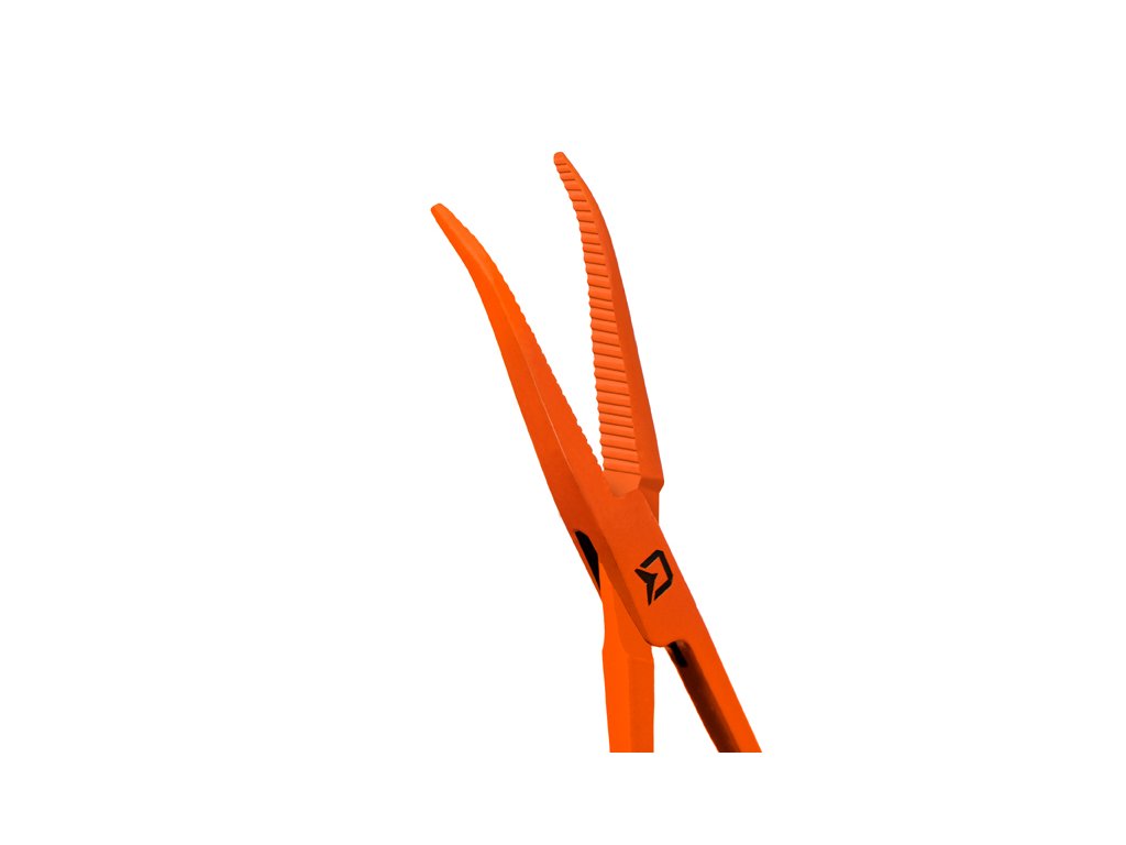 Peán Delphin ATAK! REFLEX se zahnutými čelistmi je rybářská pomůcka, která slouží k šetrnému uvolnění háčku z tlamy ryby. Vyznačuje se výraznou oranžovou barvou, díky které ho vizuálně vždy lehce identifikujete. Je vyroben z kvalitní oceli a vnitřní strana čelistí je opatřena zoubky, které pomáhají lépe uchopit háček. V místě spoje se nachází efektní černé logo Delphin.