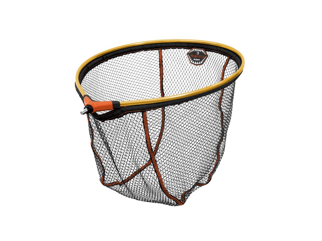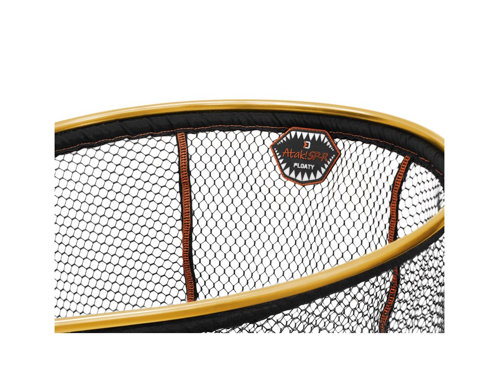 Delphin ATAK! SP-R FLOATY je plovoucí podběráková hlava s pogumovanou síťkou. Díky jejímu preciznímu zpracování nabídne maximální komfort při jejím používání. Pogumovaná černá síťka s oranžovým šitím je osazena v lehkém, ale velmi pevném hliníkovém rámu oranžové barvy. Plovoucí lem podběráku usnadní podebírání ryby. Poslouží také při focení a manipulaci s rybou ve vodě, kde rybář není nucen vybrodit na břeh, ale plovoucí lem nadlehčí podběrák na vodní hladině. Díky pogumování síťka nepřenáší nechtěné pachy a rychleji schne. Hlava se ideálně hodí pro speciální sérii rukojetí Atak! Nicméně, díky univerzálnímu závitu je vhodná pro většinu prodávaných rukojetí. Tato bezvadně zpracovaná přívlačová hlava si vás získá hned na první pohled.