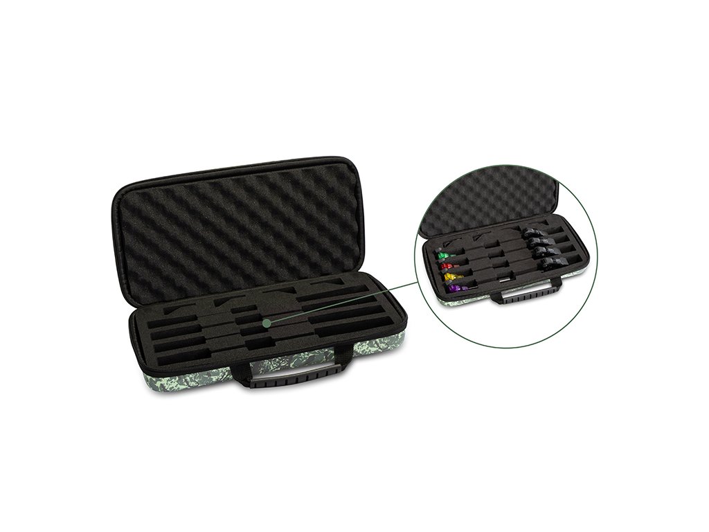 Na tvrzené pěně uvnitř se nacházejí čtyři univerzální výřezy pro závěsné signalizátory, jako CAPRY, TRYO, SKIPER, ale i jiné signalizátory podobného typu, které jsou dostupné na trhu. Vrchní část má pěnovou výplň, která signalizátory fixuje a eliminuje tak možnost jejich nechtěného vypadnutí či poškození během přenosu.