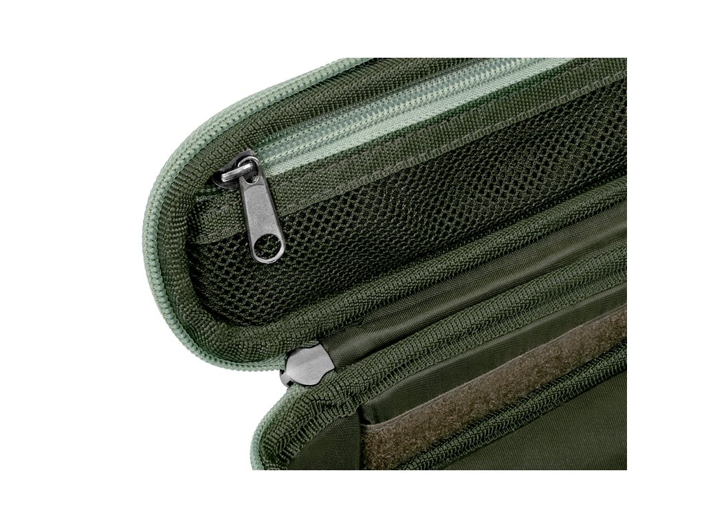 Polstrované víko je zevnitř opatřeno praktickou síťovou kapsou na zip, do které můžete uložit další drobné příslušenství ke svítidlům jako baterky, konektory či nabíjecí kabely.