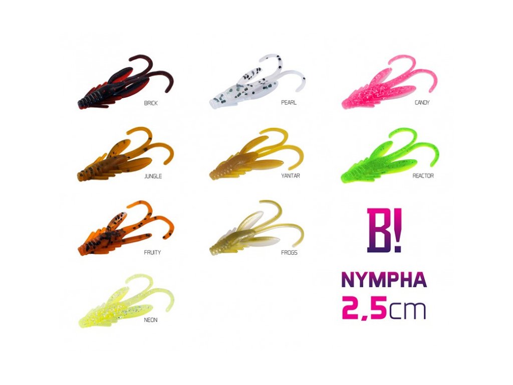 Velmi úspěšný tvar pro nejjemnější chytání. To je NYMPHA! Díky svému tvaru dokonale napodobuje oblíbenou potravu dravců našich vod. Její pohyb ve vodě je dokonalý ze dvou důvodů: